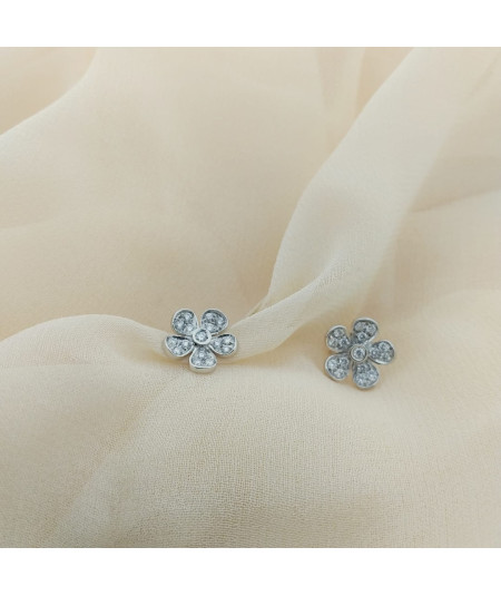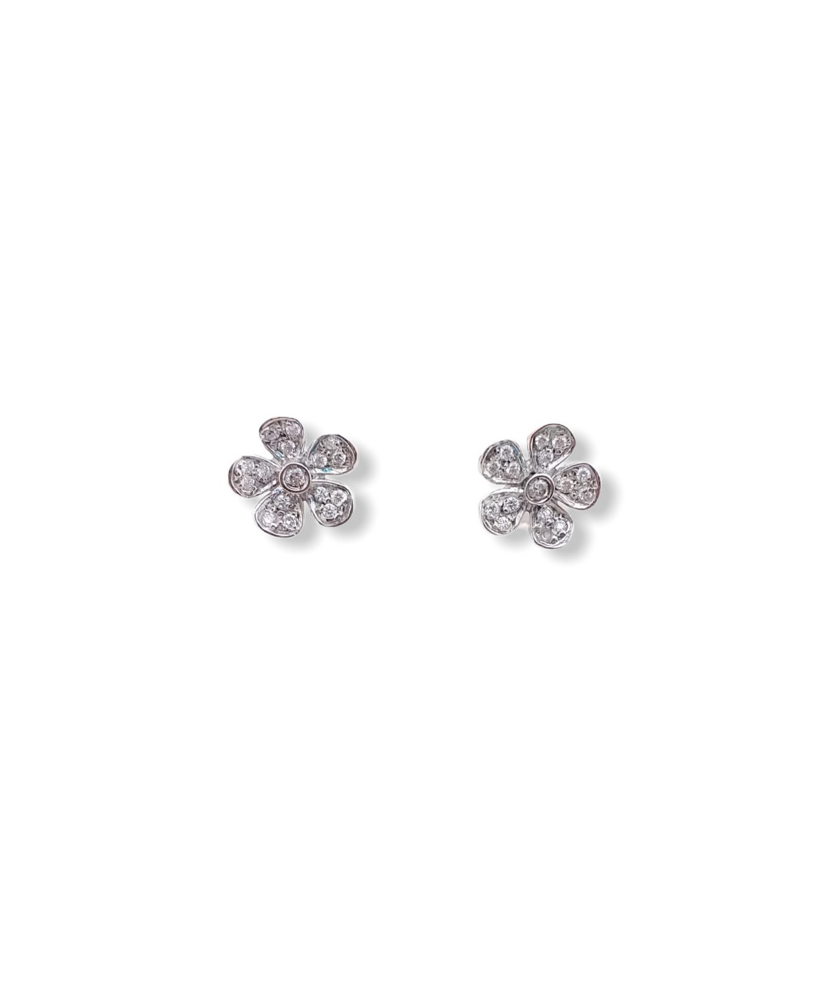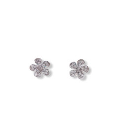 Pendientes flor oro blanco de 18 kt con un diámetro de 11 mm y brillantes 0.68 kt con cierre de presión