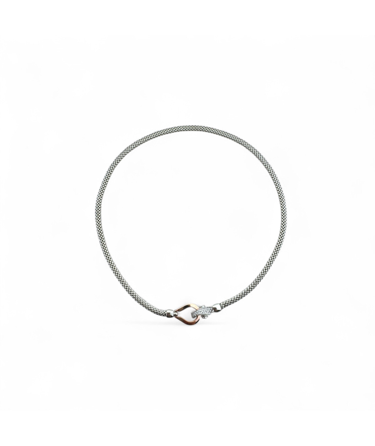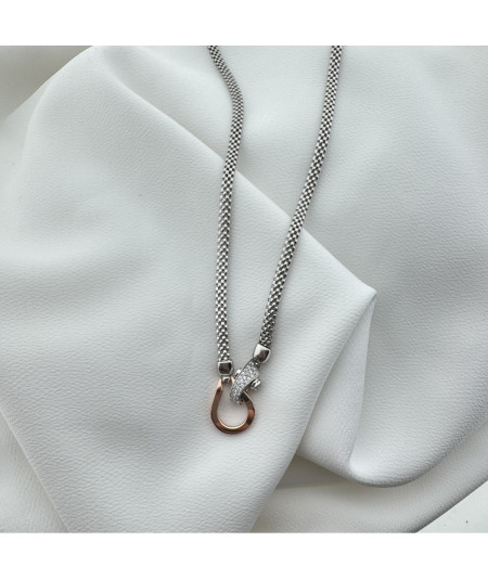 Collar plata de ley cadena tubular con cierre plata rosada y circonitas.