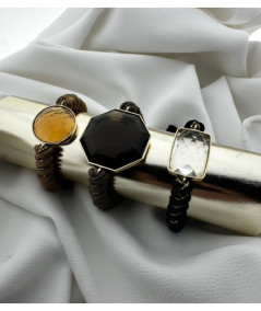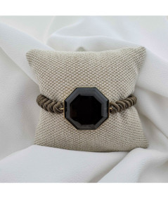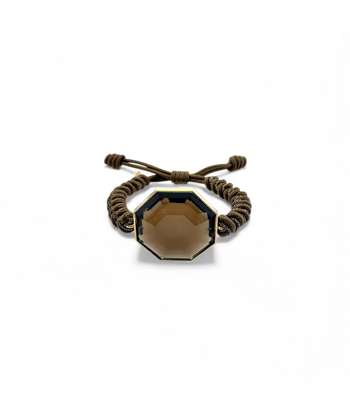 Pulsera oro 18kt amarillo y cuarzo fumé con macramé color marrón y cobre.