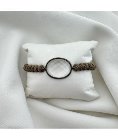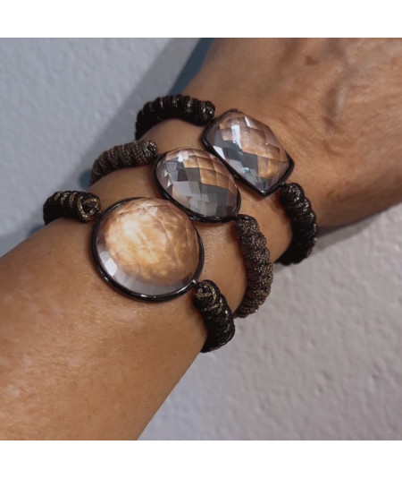 Pulsera plata de ley rodiada en negro y cuarzo facetado con macramé marrón y cobre.