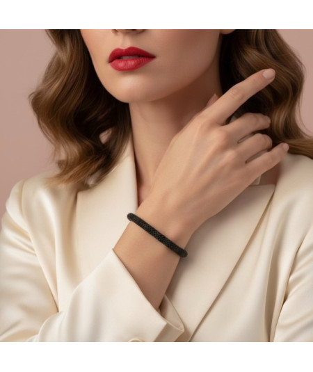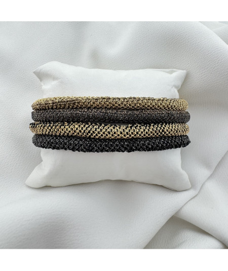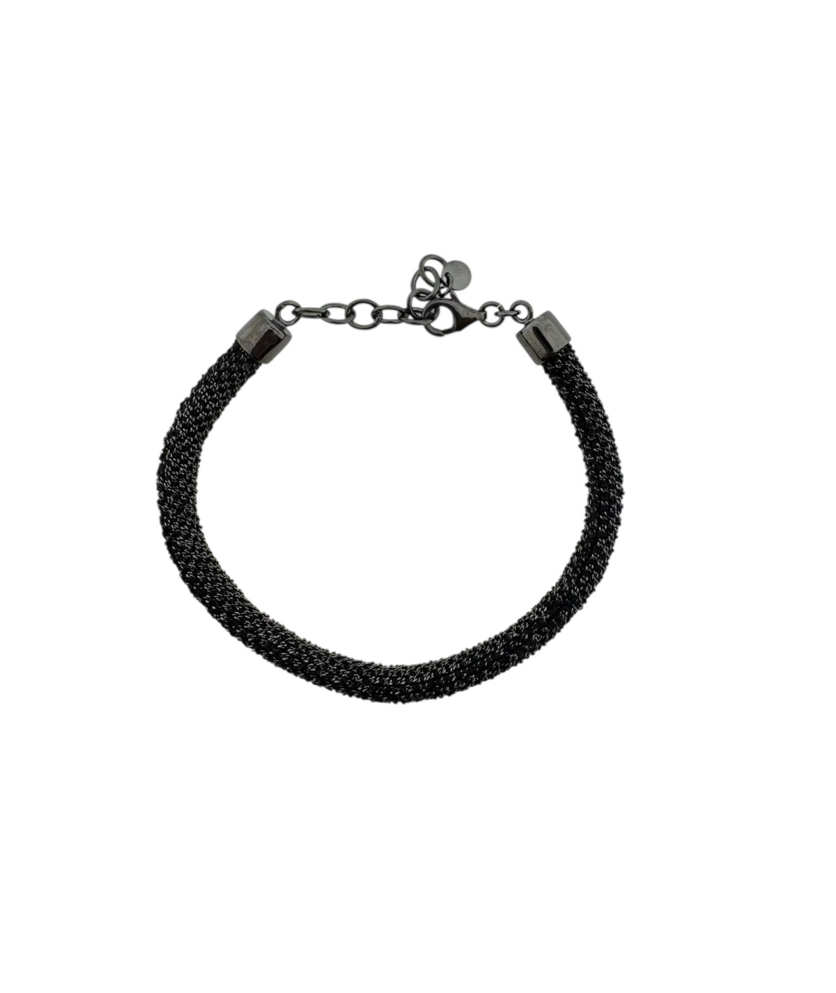 Pulsera malla negro en plata oxidada de ley.
