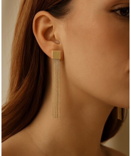 Pendientes largos cadenas plata de ley dorada.