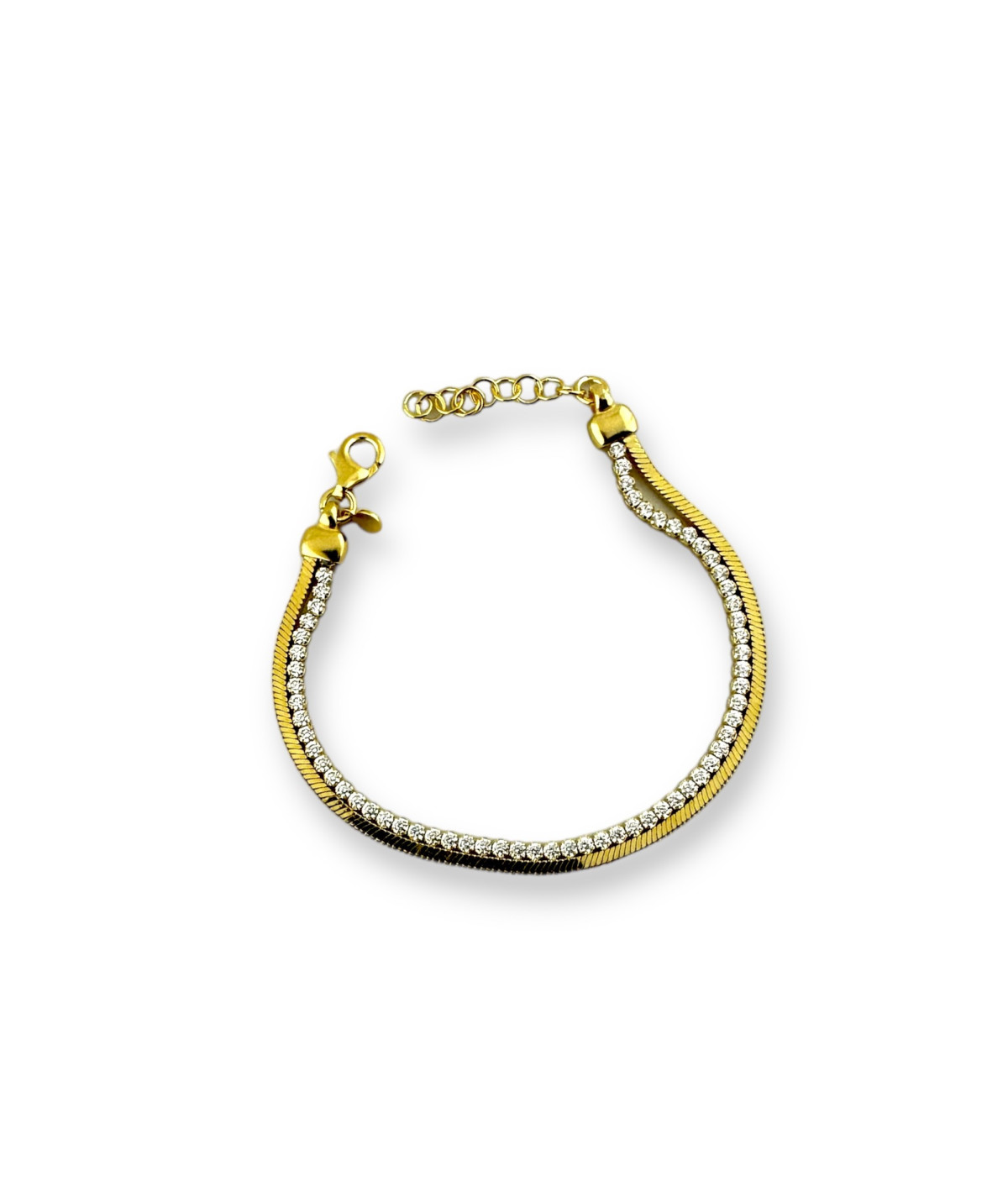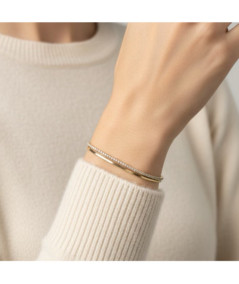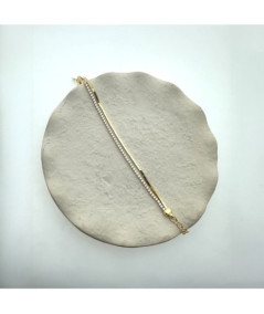 Pulsera riviere doble en plata dorada de ley con circonitas y cadena.