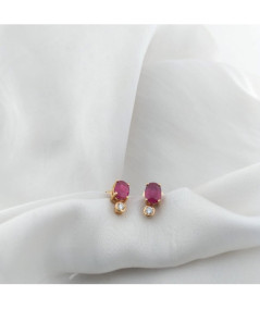 Pendientes rubis ovales de 5.50 x 4 mm, brillantes 0.12 kt en oro rosa de 18 kt