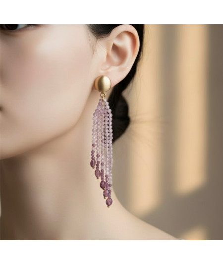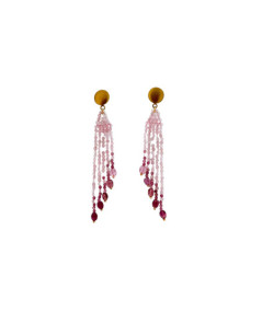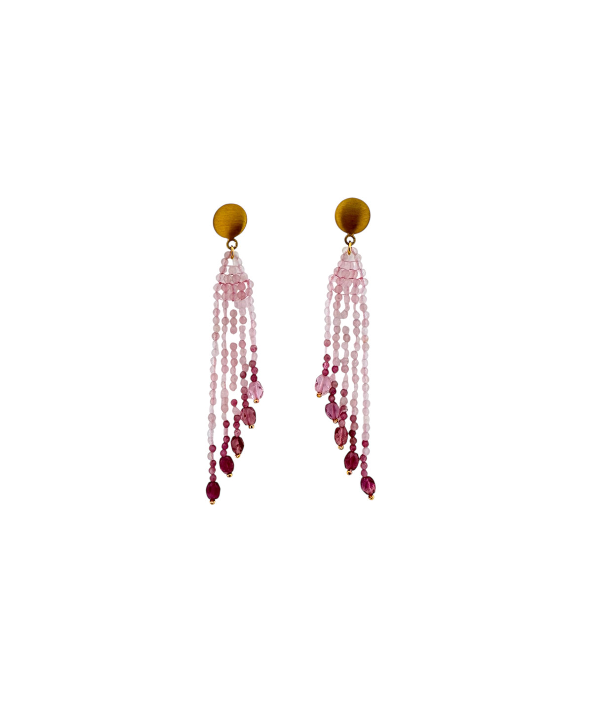 Pendientes largos plata dorada de ley,cuarzo rosa y turmalinas.