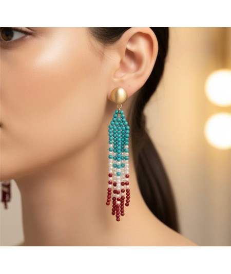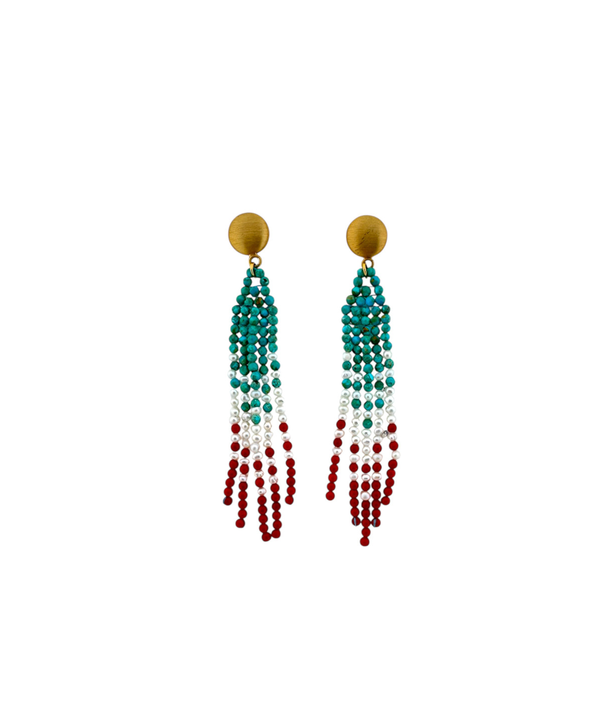 Pendientes plata dorada de ley ,turquesa, coral y perla.