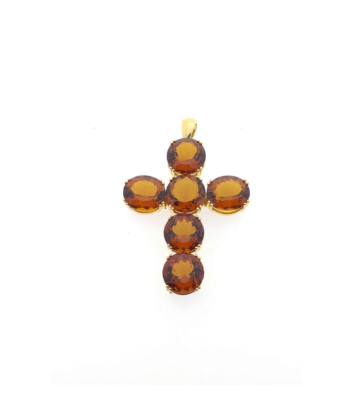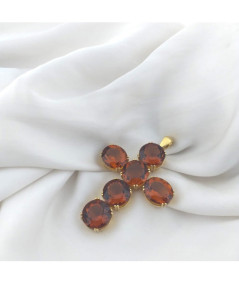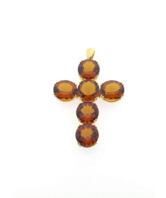 Cruz de plata dorada de ley y topacios.