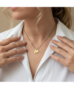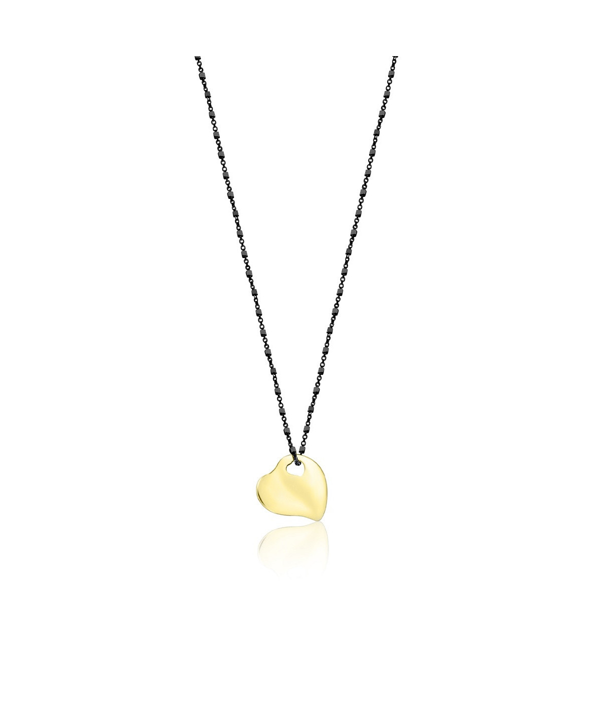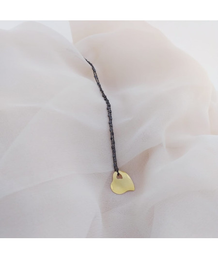 Colgante corazón oro 18 Kt mini 14x14 mm con cadena de plata de ley pavonada de 42 cm