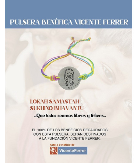 Pulsera solidaria plata de ley Namasté a beneficio íntegro para la Fundación Vicente Ferrer