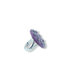 Anillo con rubi tallado, de 28 mm de diámetro y oro blanco de 18 kt con 8 brillantes de 0.36 kt