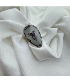 Anillo plata y esmalte con brillantes