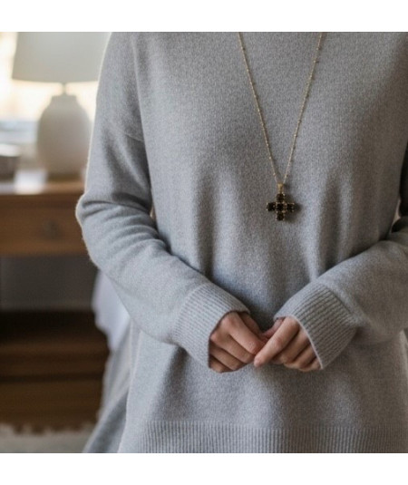Cruz de plata y cuarzo fumée
