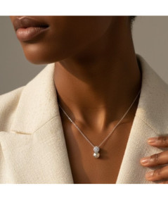 Colgante oro blanco de 18 kt con brillantes blancos y 1 diamante gris con cadena de 40 cm