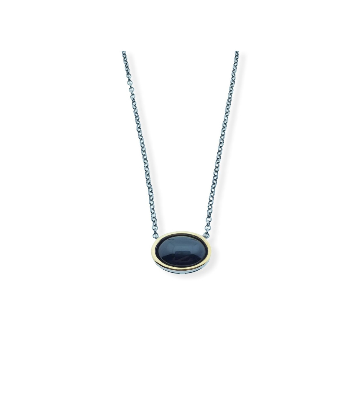 Collar en plata de ley oscurecida y bisel en oro de 18 kt con onix oval estrella de 2 x 1.5 cm y cadena de 38 cm