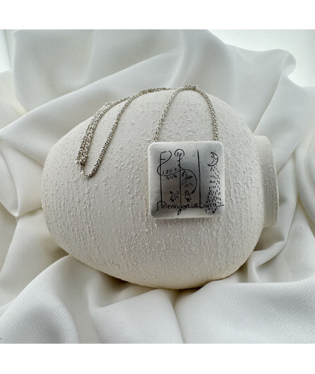 Colgante/Broche en plata de ley con la firma de Federico García Lorca y cadena de plata pavonada en negro.