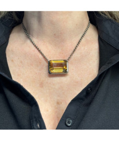 Collar topacio rectangular facetado de 56.59 kt de 28 x 23 mm con cadena de plata de ley con rutenio de 40 cm de largo