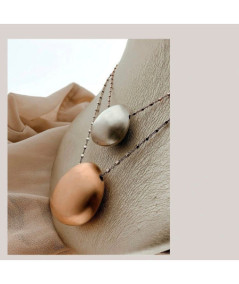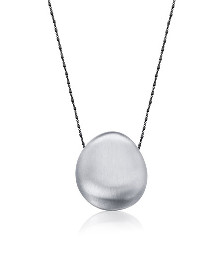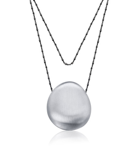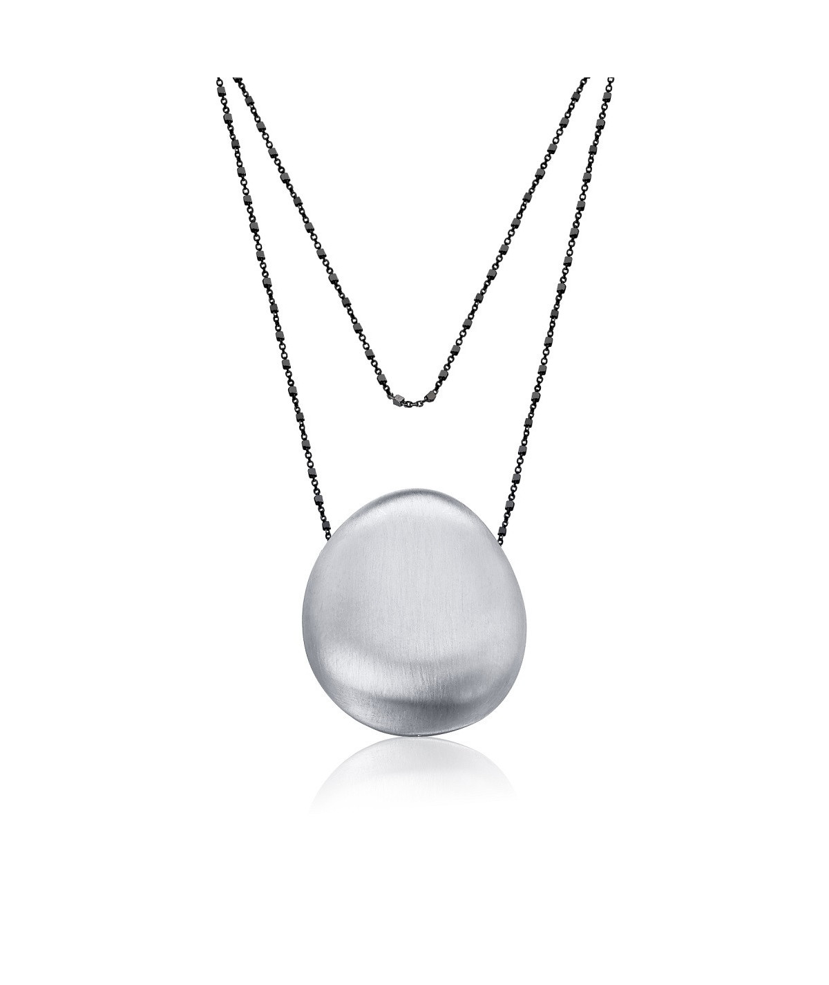 Collar lágrima plata mate de ley de 35 x 30 mm con cadena plata negra larga de 80 cm