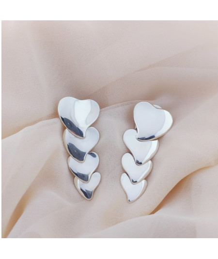 Pendientes en plata de ley, de 5 cm de largo, con 4 corazones de diferentes medidas.