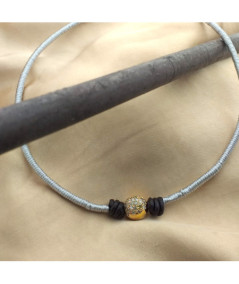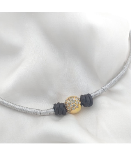 Collar bola brillantes grises con cordón