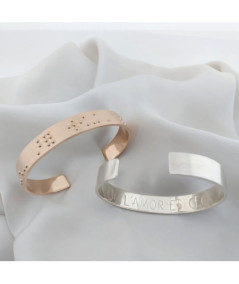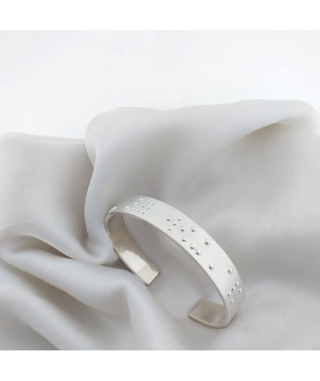 Pulsera tipo esclava en plata mate de ley con la inscripción L´AMOR ES CEC en catalán y en Braille.