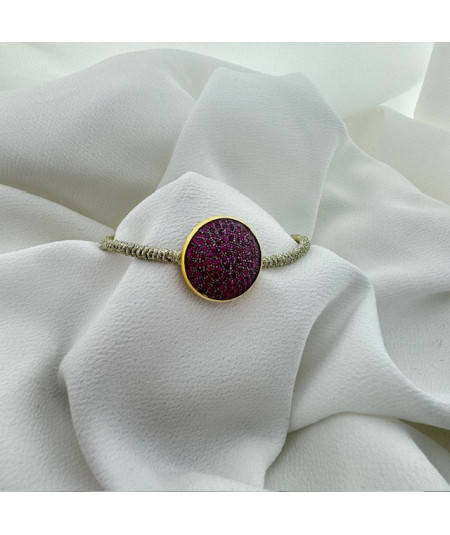 Pulsera botón central de rubis y oro amarillo 18 kt.