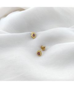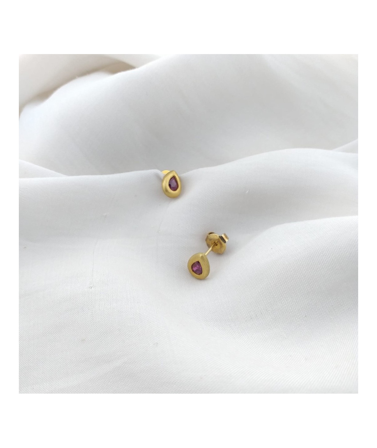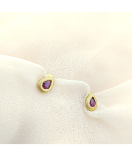 Pendientes rubí oro amarillo mate de 18 kt.