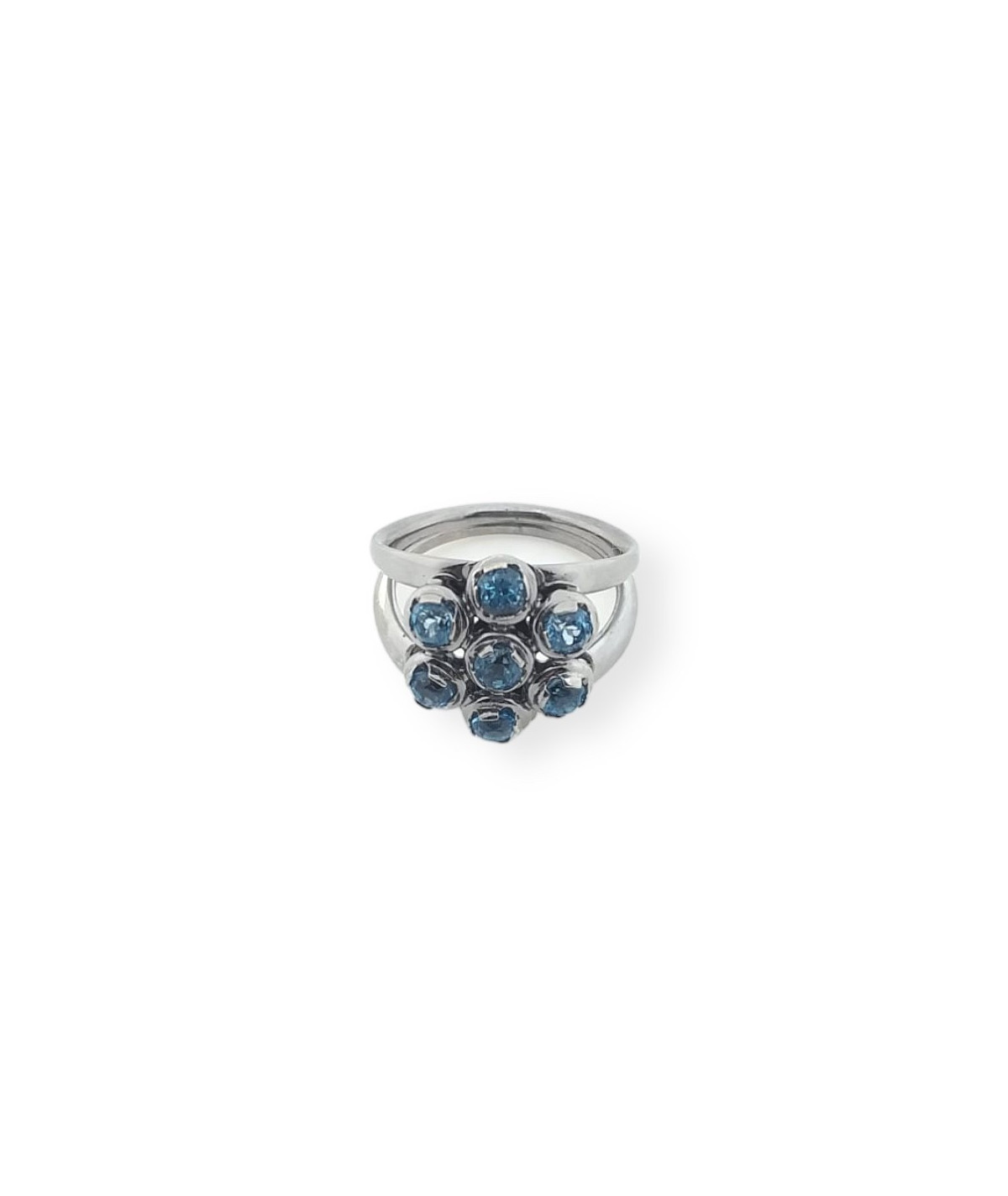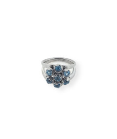Anillo en plata de ley y oro 18 kt con rosetón de topacios.