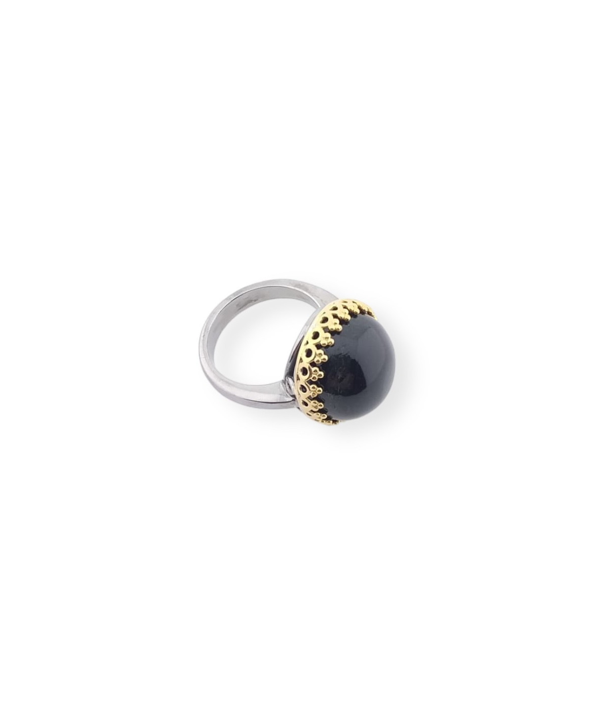 Anillo en plata de ley y bisel de oro 18 kt con estrella negra de la India redondo.