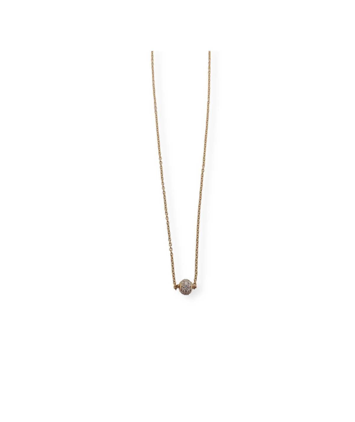 Colgante bola de brillantes en oro rosa con cadena.