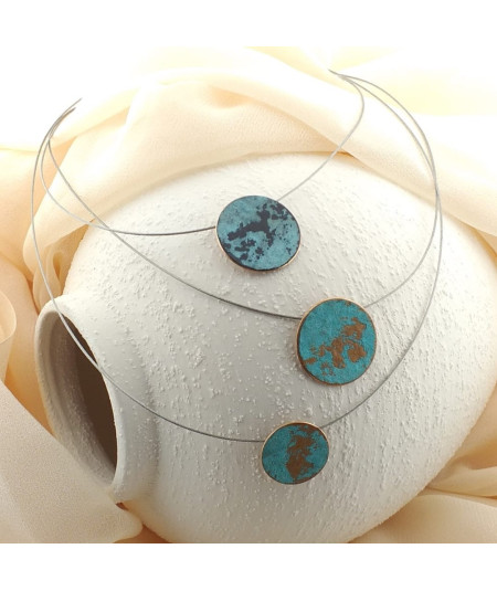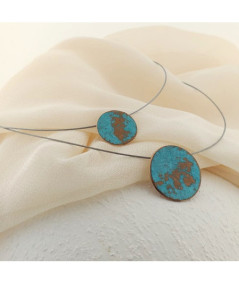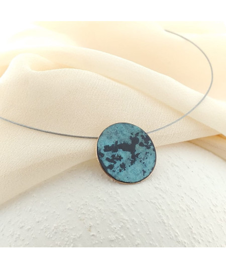 Collar rígido de acero con colgante de bronce patina verde y cierre de plata de ley.