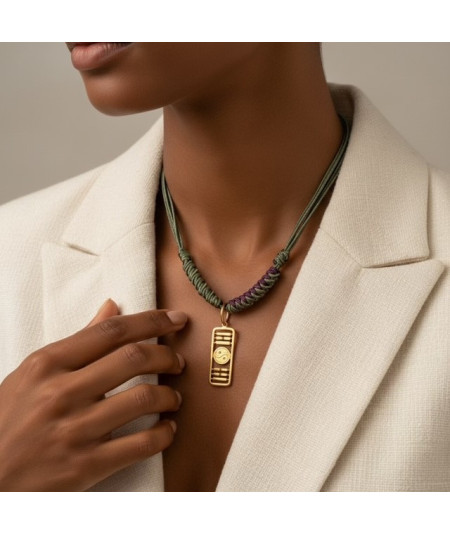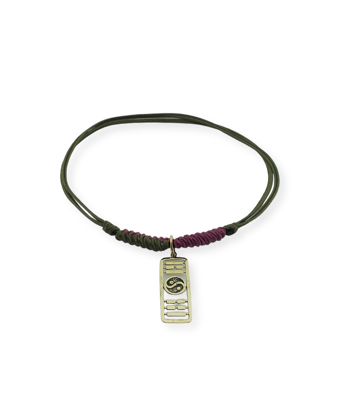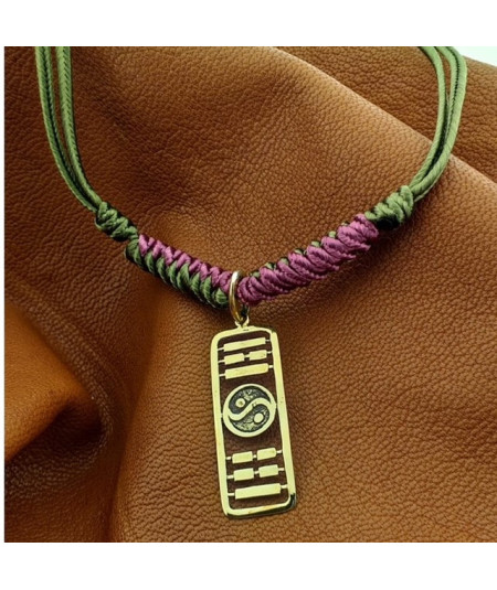 Colgante PA-KWA ARMONÍA en bronce con cordón verde y granate cierre con nudo corredero.