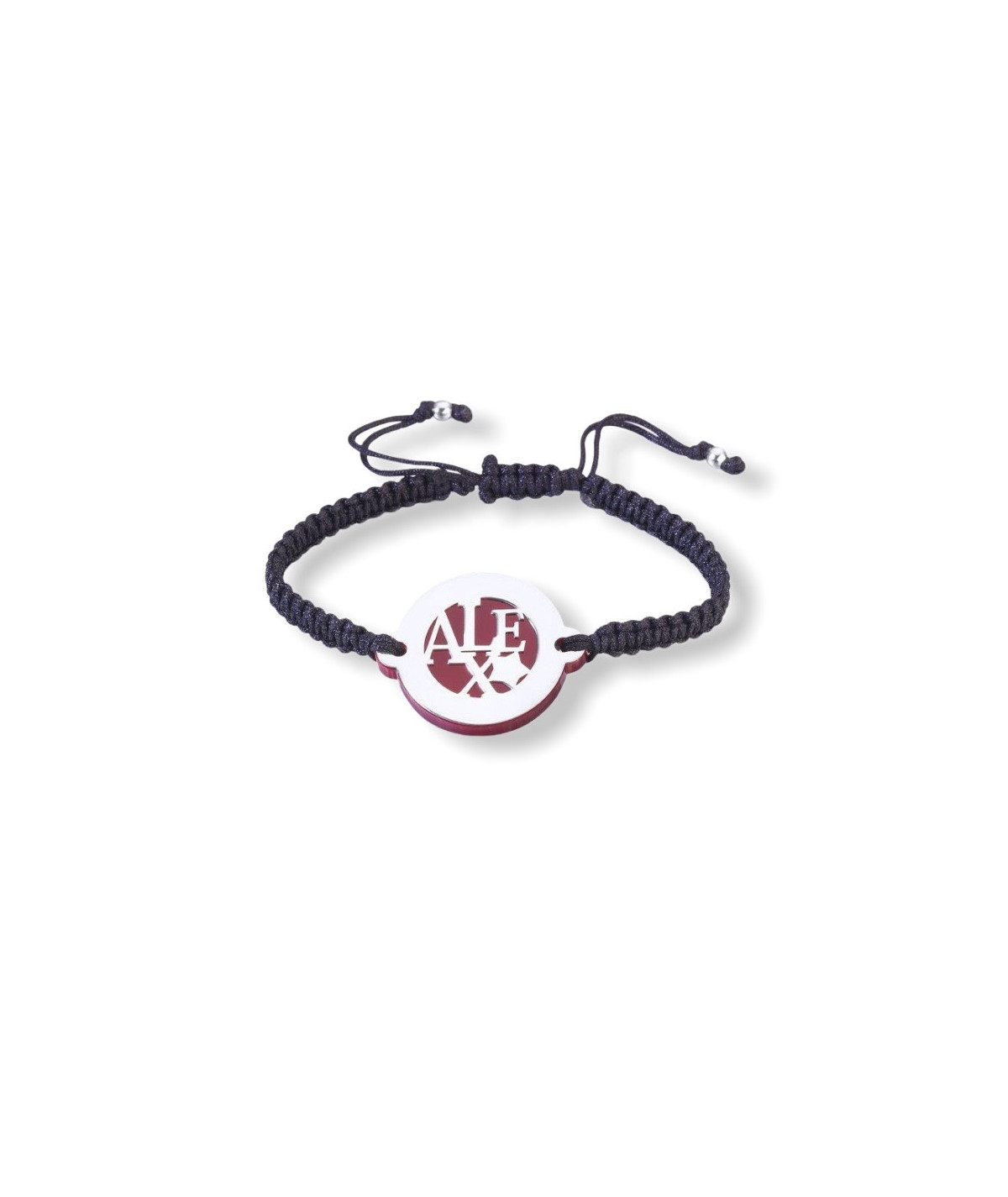 Pulsera plata de ley de 21 mm de diámetro y metacrilato granate con 1 nombre .