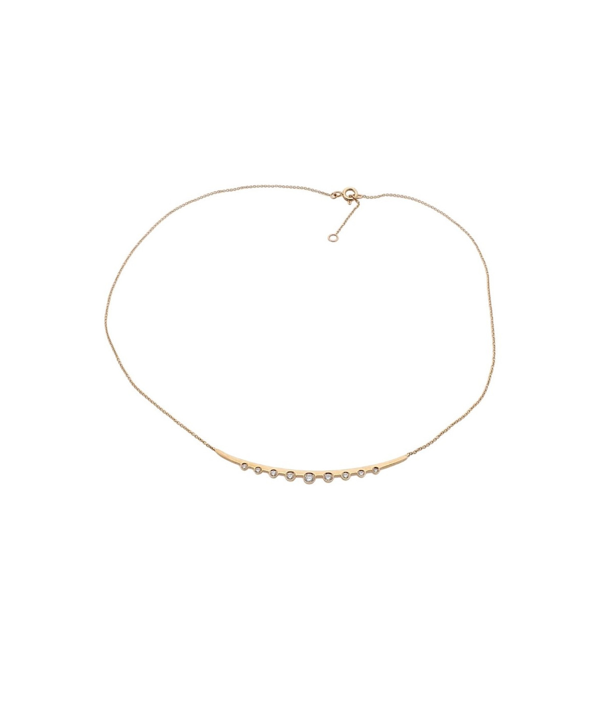 Collar barra de oro rosa 18 kt con 9 brillantes.