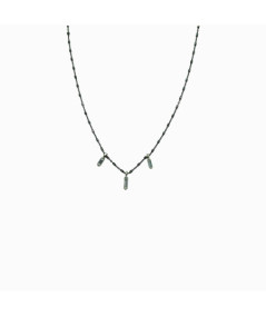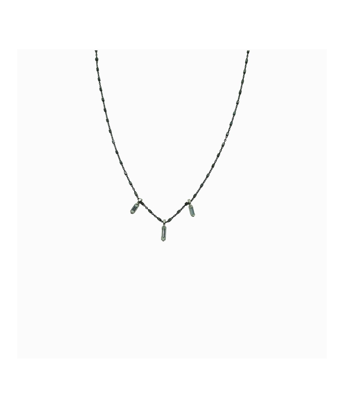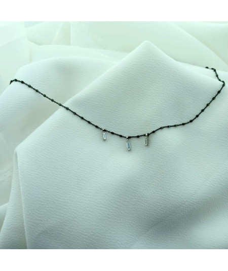 Collar con 3 brillantes baguettes en oro blanco 18 kt y cadena plata oxidada.