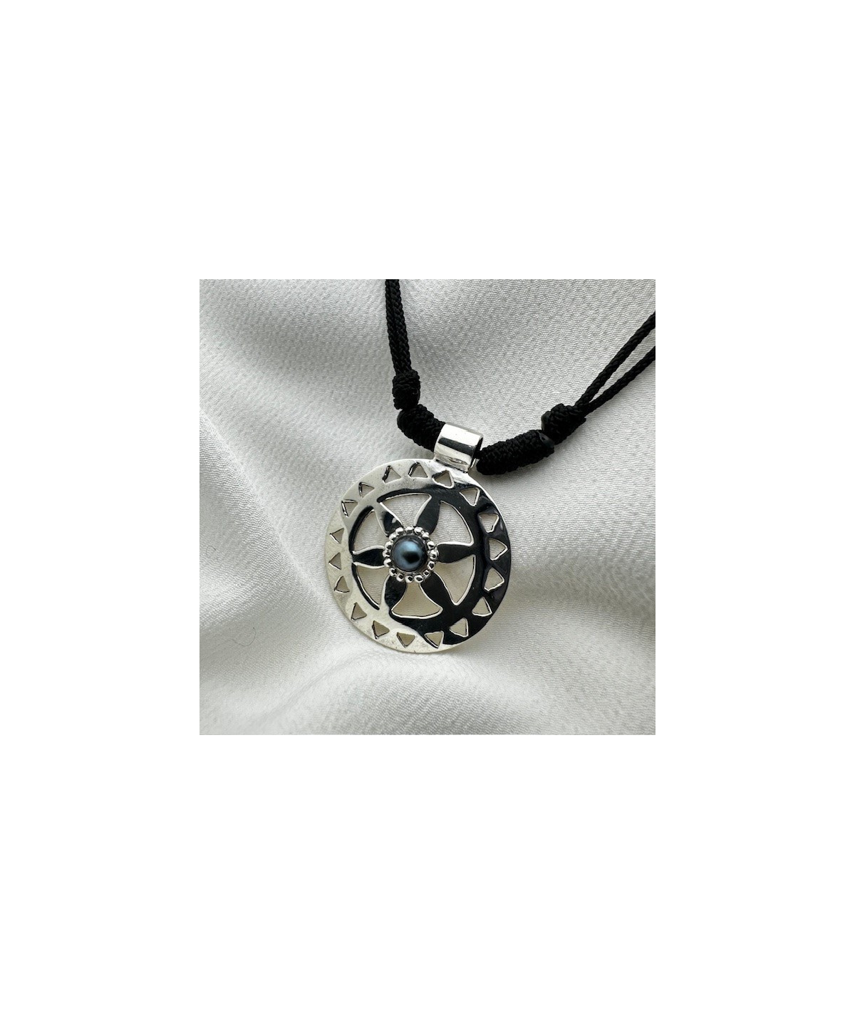 Colgante en plata de ley y perla gris central.