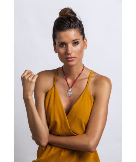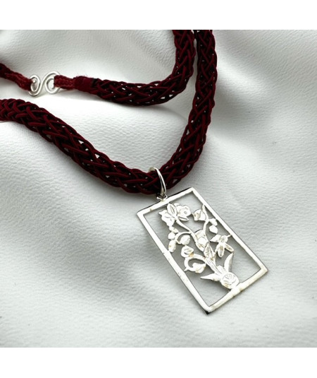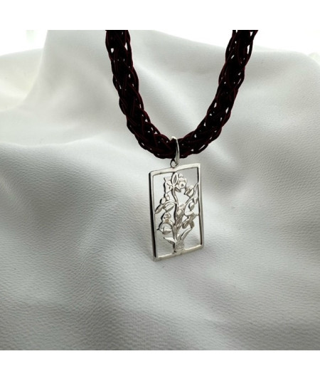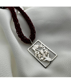 Colgante árbol de la vida plata de ley con cordon granate y cierre de plata.
