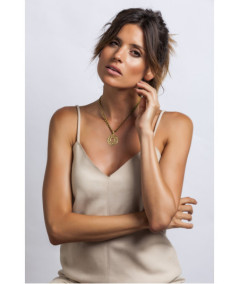 Colgante rueda de la vida en bronce con cordón verde y cierre de bronce.