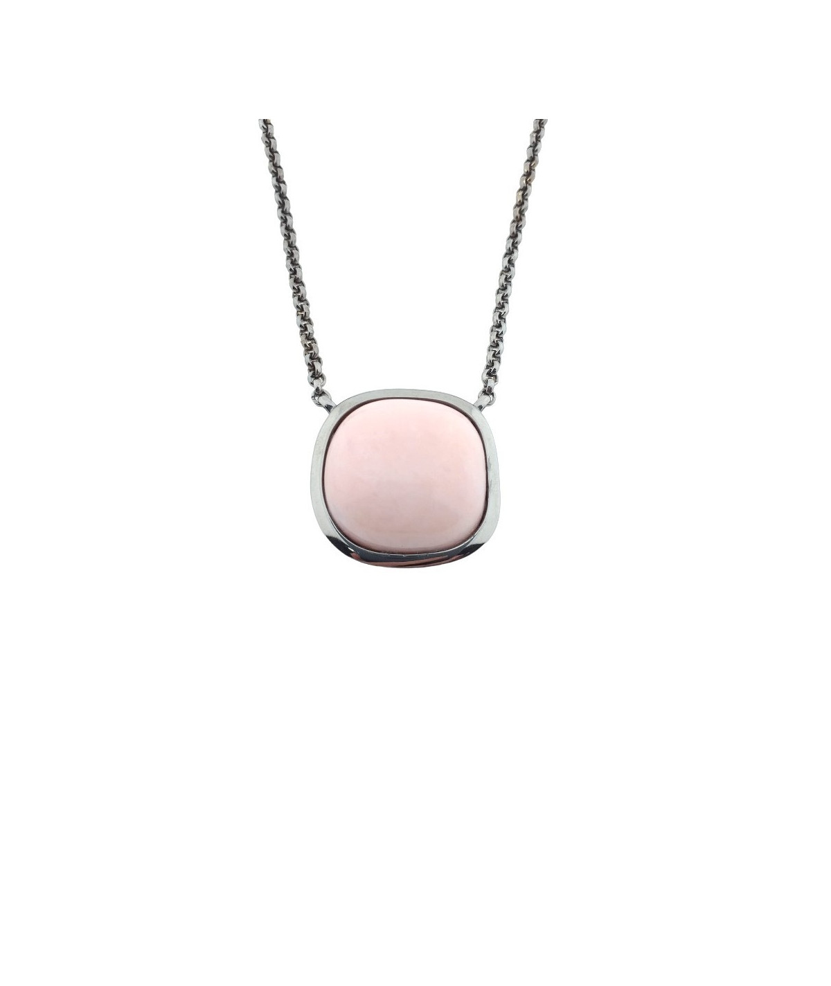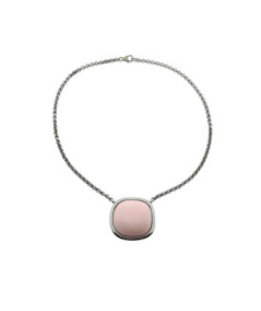 Collar de ágata rosa de 32x32 mm con cadena de plata pavonada de 40 cm de largo