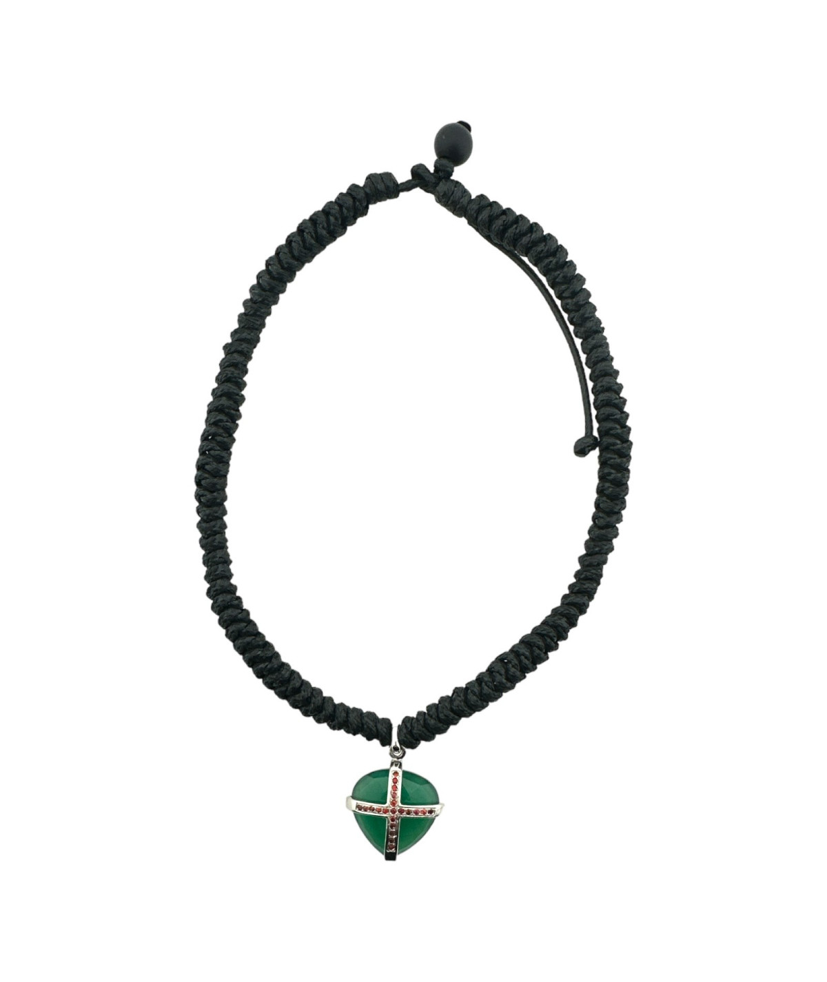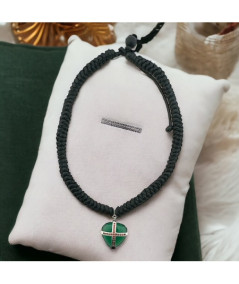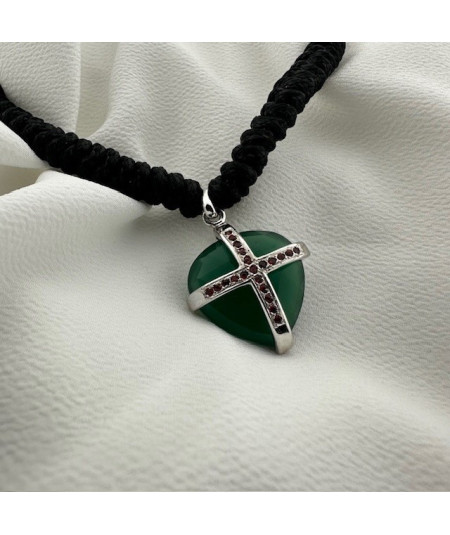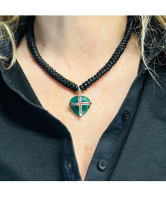 Collar en oro blanco de 18 kt con motivo corazón ágata verde y rubís.