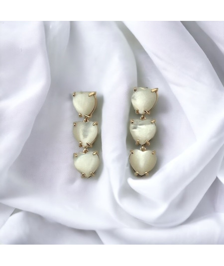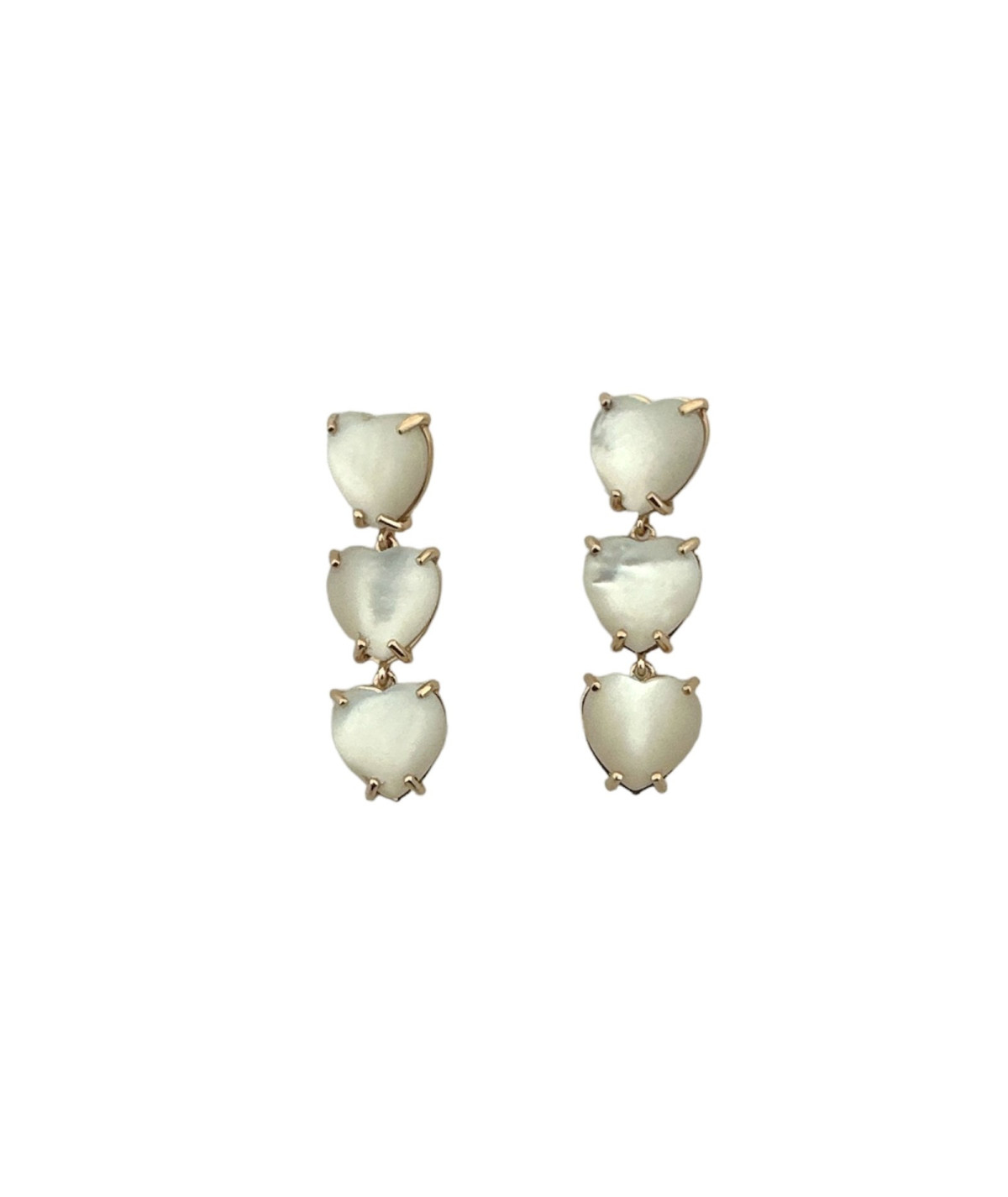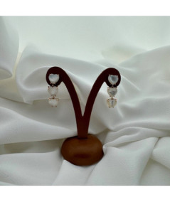 Pendientes en oro rosa de 18kt con tres corazones de nácar.