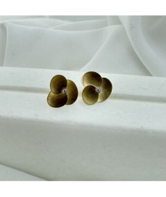 Pendientes plata y oro forma flor con brillante