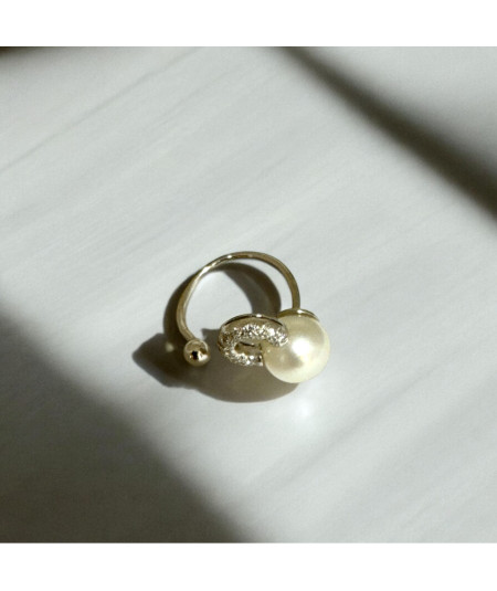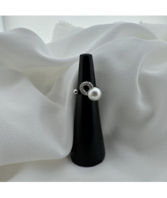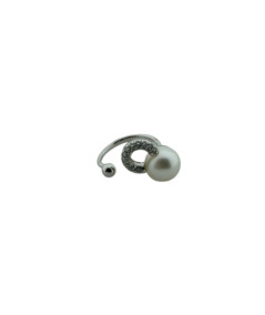 Anillo de oro blanco 18kt con perla color blanco y brillantes.