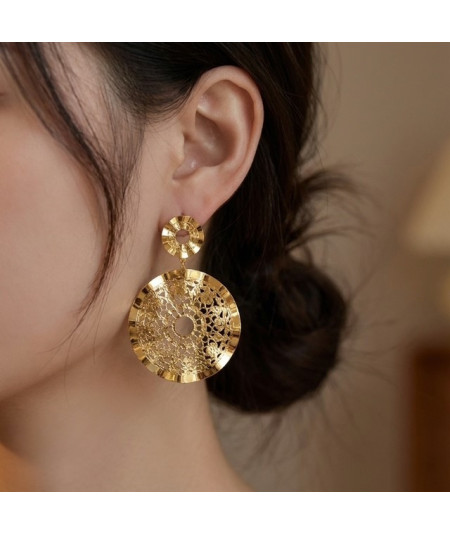Pendientes largos plata dorada de ley con dos círculos.