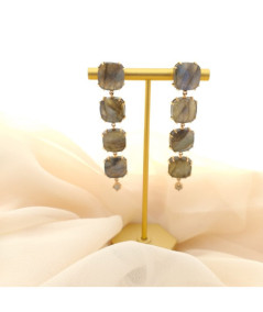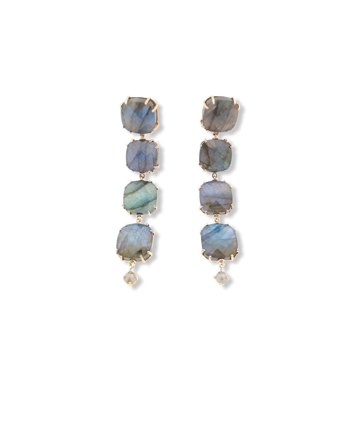 Pendientes labradoritas oro rosa de 18 kt con dos diamantes marrones de 7 cm de largo