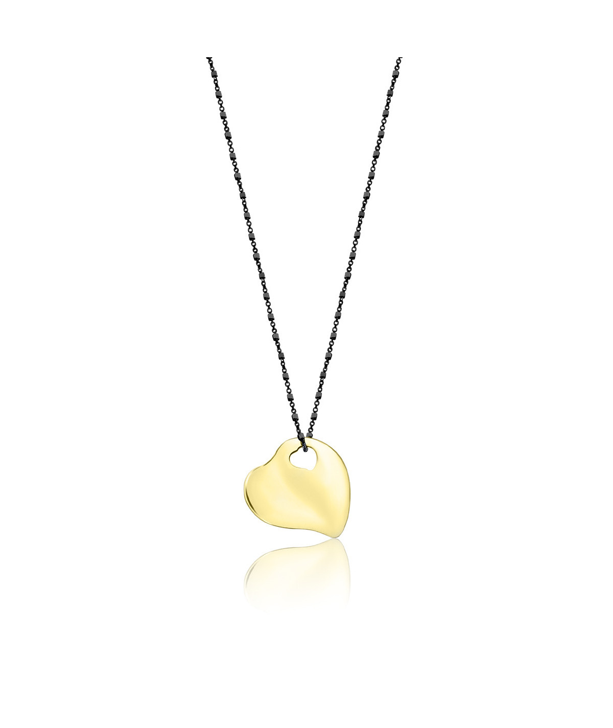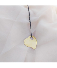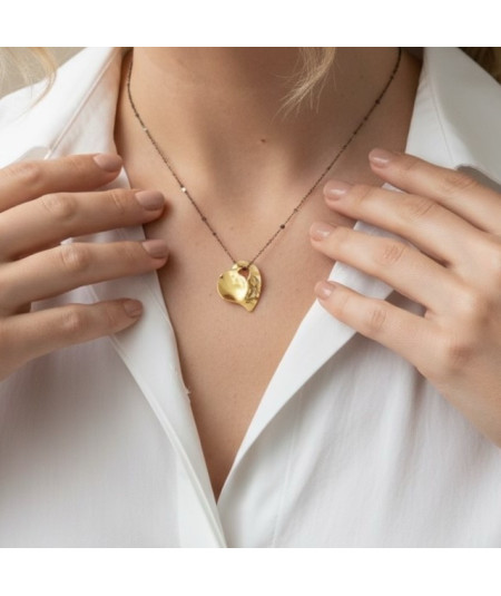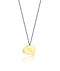 Colgante corazón oro 18 Kt pequeño 20x20 mm con cadena de plata de ley pavonada de 42 cm
