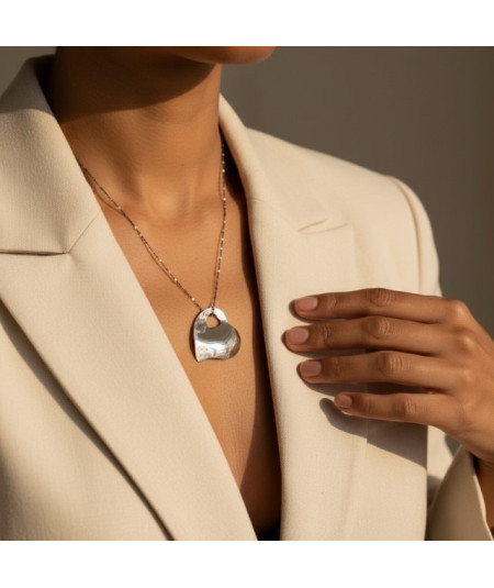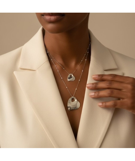 Colgante corazón plata de ley mediano de 27x27 mm con cadena de plata pavonada de 42 cm
